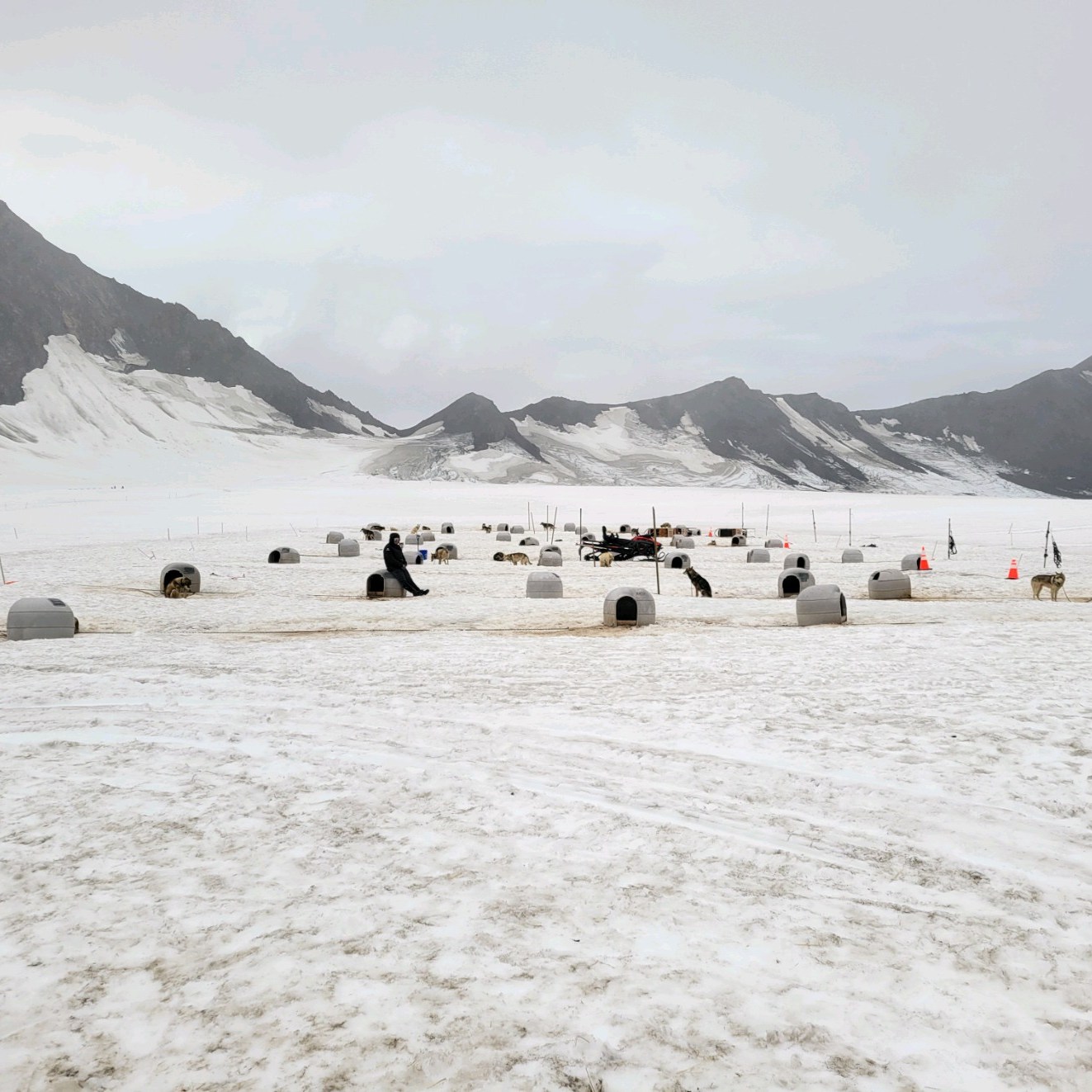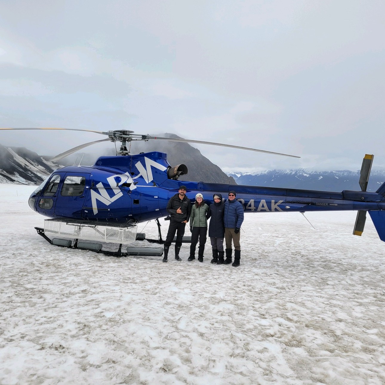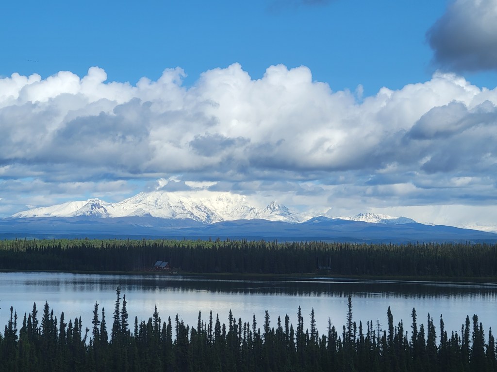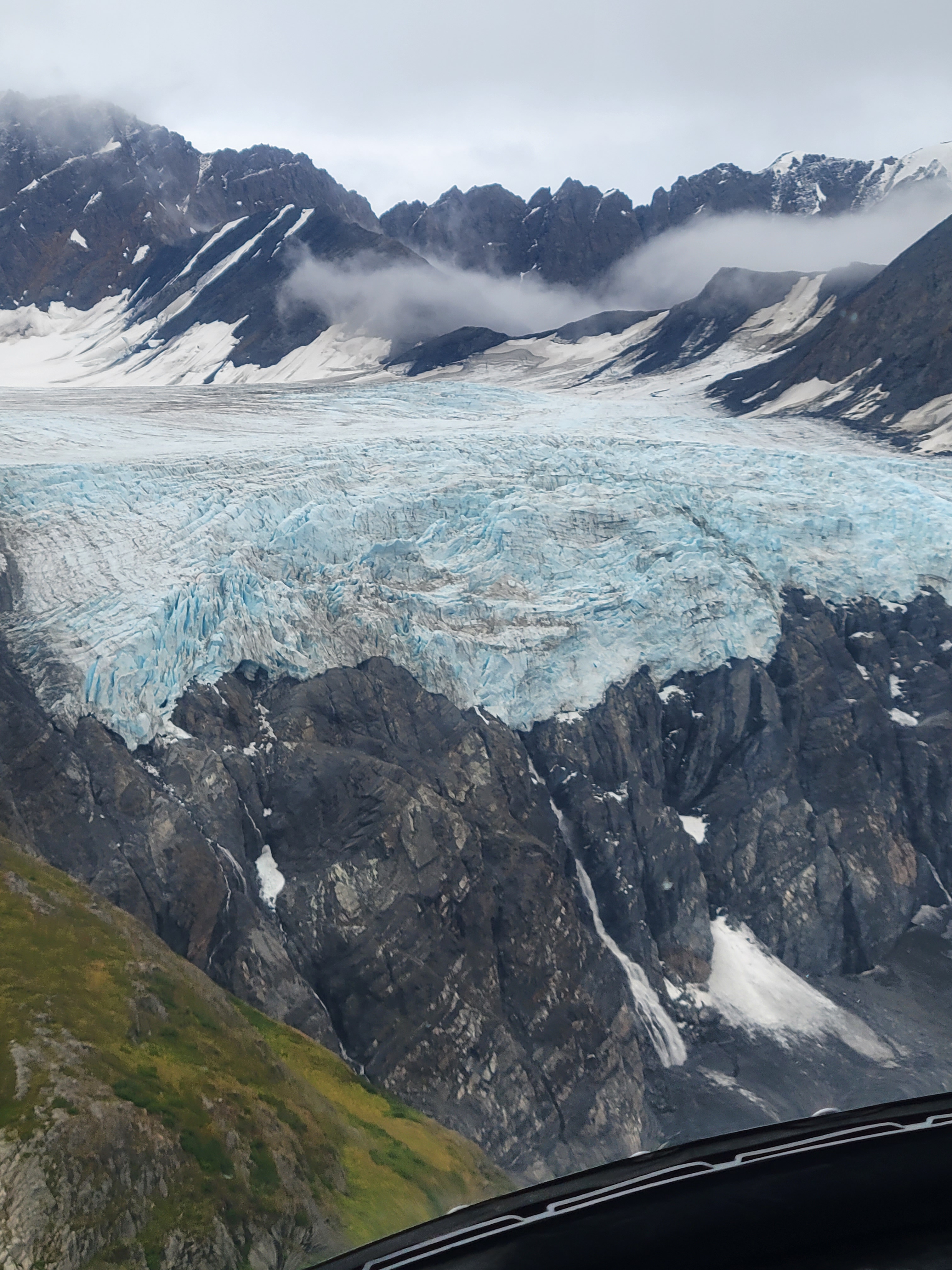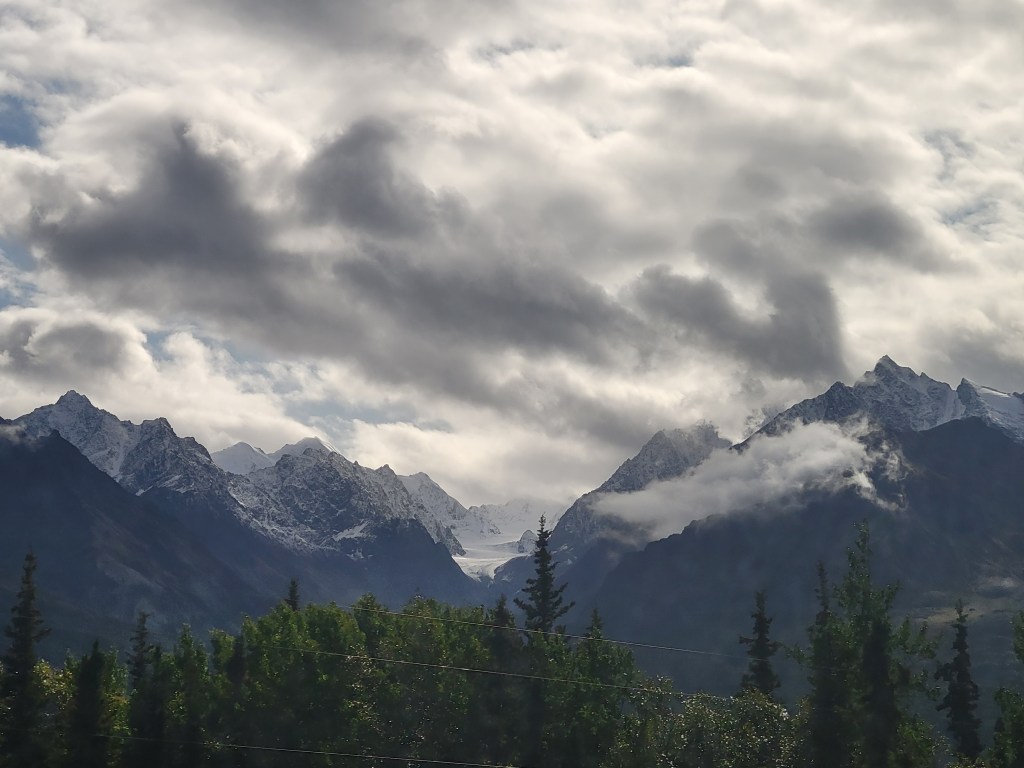 I mentioned in a previous post that our dog sledding got cancelled and we rescheduled farther north. This is farther north. Alaska Helicopter Tours [AK Helicopter Tours | The Ultimate Alaskan Experience (alaskahelicoptertours.com)] is fantastic. I highly recommend the splurge of booking this tour. It’s a helicopter ride to Knik Glacier where Dog Camp lies during the summer, but along the way you’ll spot Dall Sheep, Black Bears, and Moose, or what our pilot called “Alaska Bingo”.