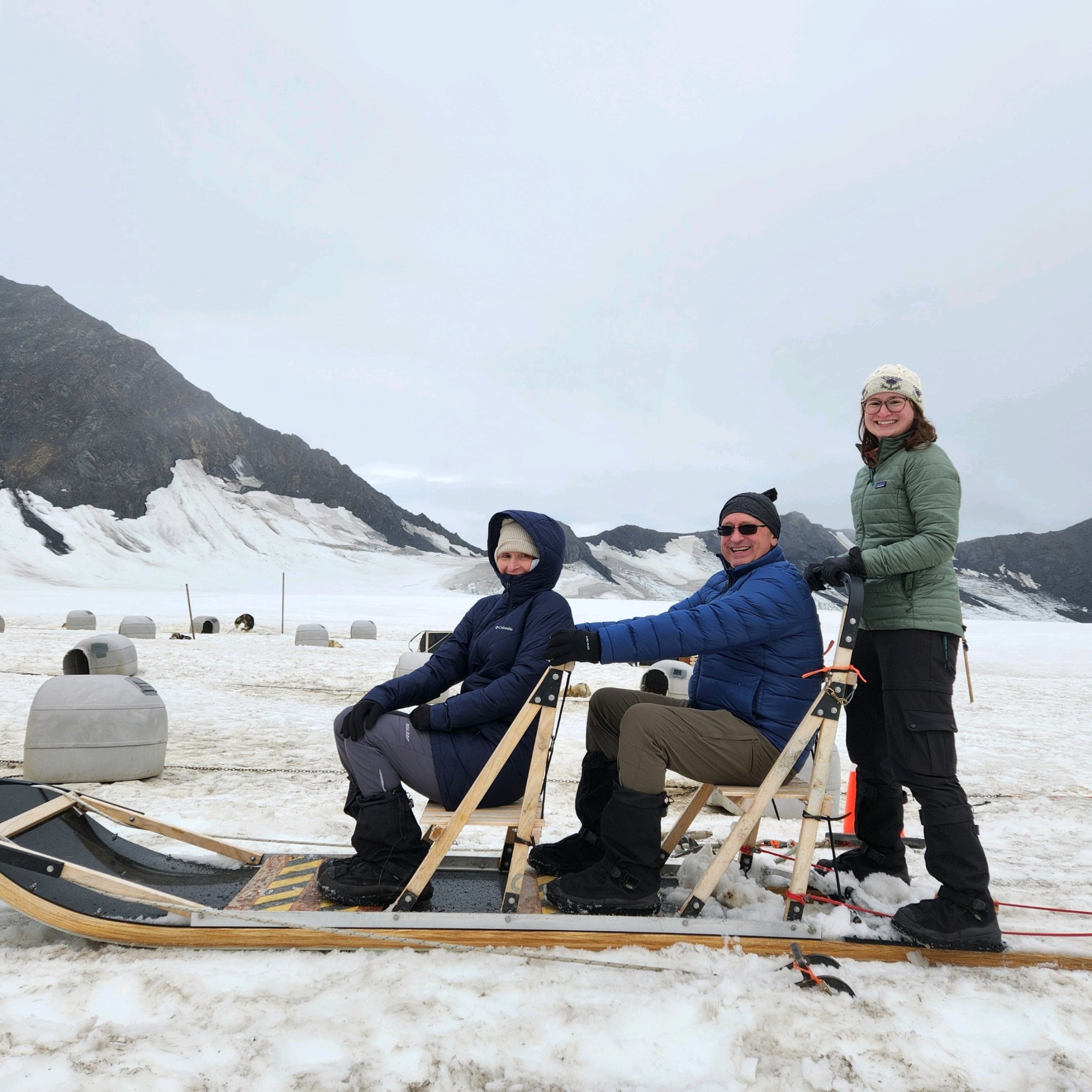 48 sled dogs live on Knik Glacier through the summer with trainers helping prepare the dogs for the Iditarod race. All the dogs are owned by a 5-time champion and several of the dogs are winners of the race as well. Fun fact: you can adopt a retired sled dog! Not only did we get to go dog sledding, but we also played with a couple of the puppies, mushed the dog sled ourselves, and learned about the operation. Everything must be flown back down at the end of the summer. The dogs and all of their stuff, the trainers and the insulated little huts that they live in. Everything goes by helicopter. But it’s so worth it for the dog sledding experience!